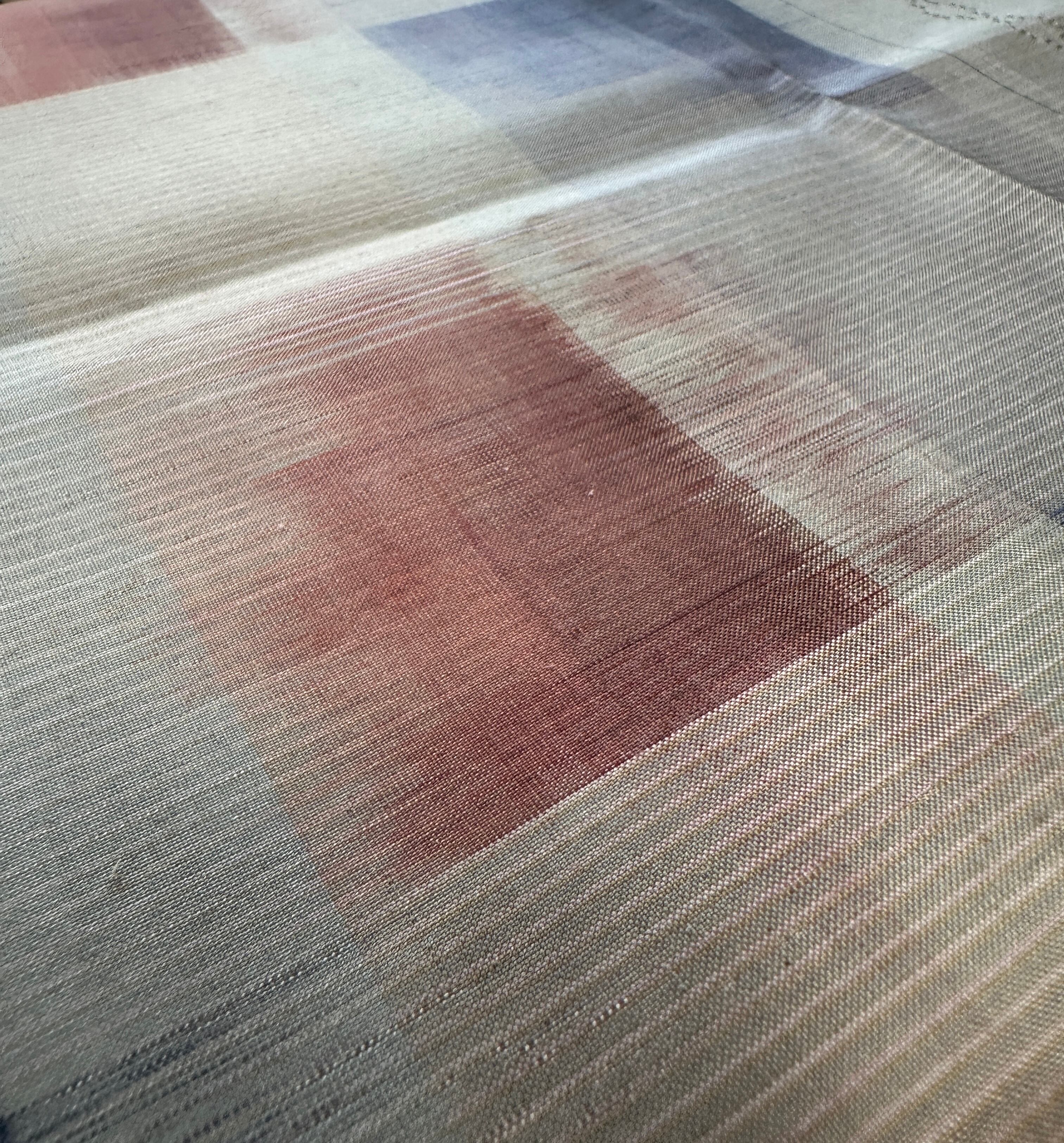 近づいて眺めれば織の緻密さに引き込まれ、離れて眺めれば空気に溶けるようにやわらかに呼吸する、そんな心安らぐひとときを感じさせてくれる作品です。