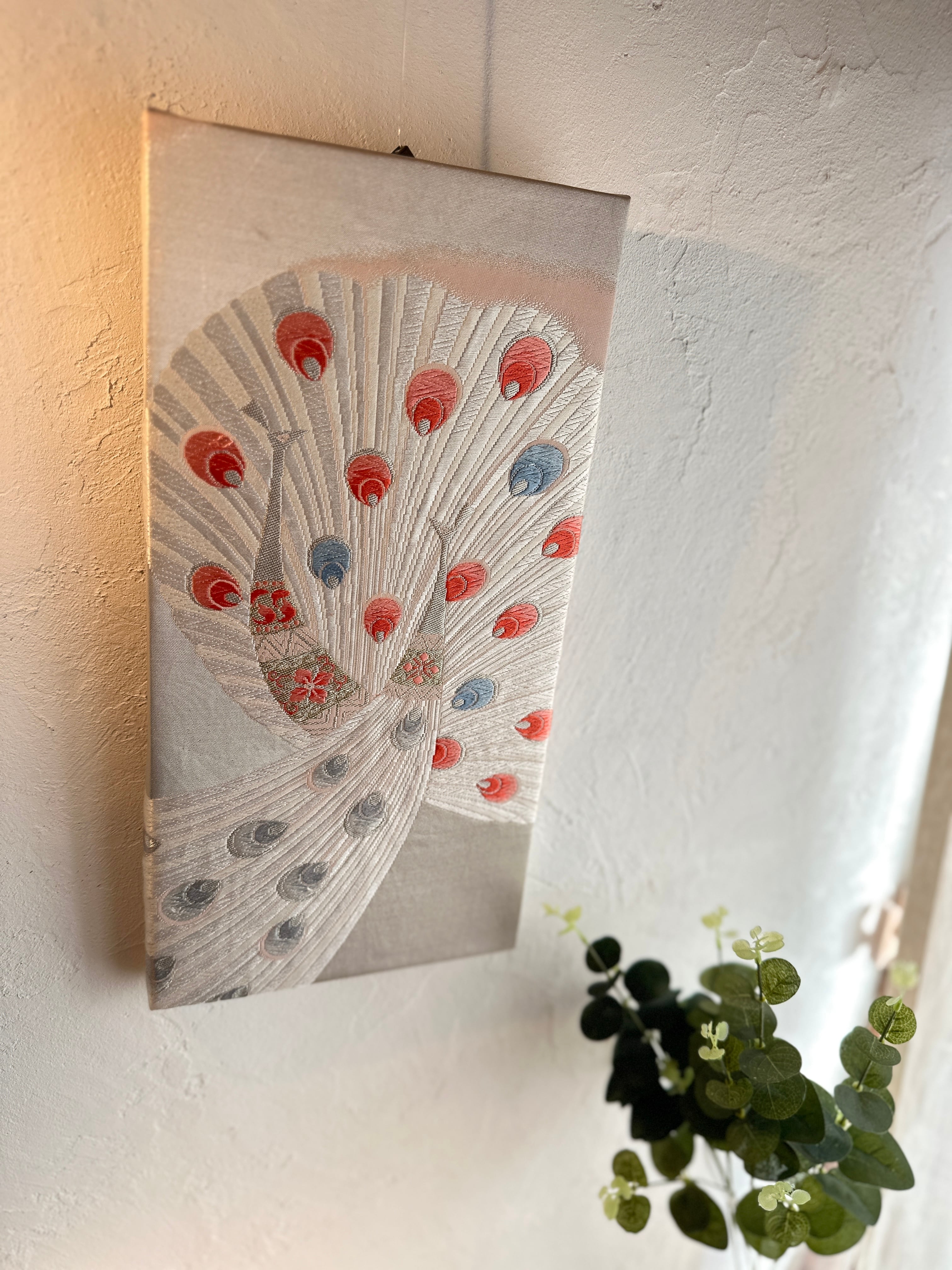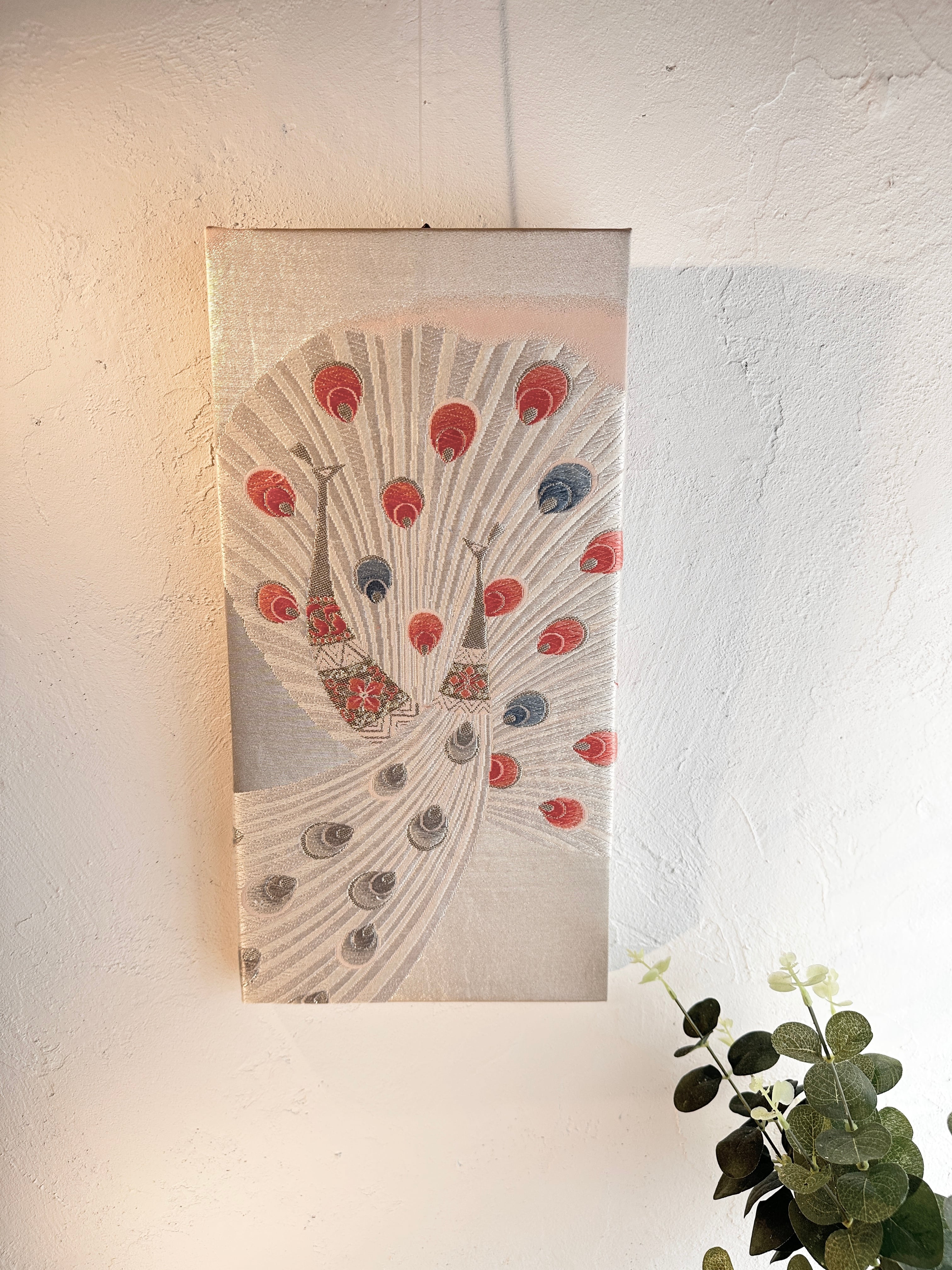 孔雀の優雅な姿が、この壮大な色彩の世界観を背景に、まるで夢の光景のように華麗に舞い、見る者の心に深い感動と詩的な響きをもたらす逸品です。色彩が織りなす「夢幻の世界」