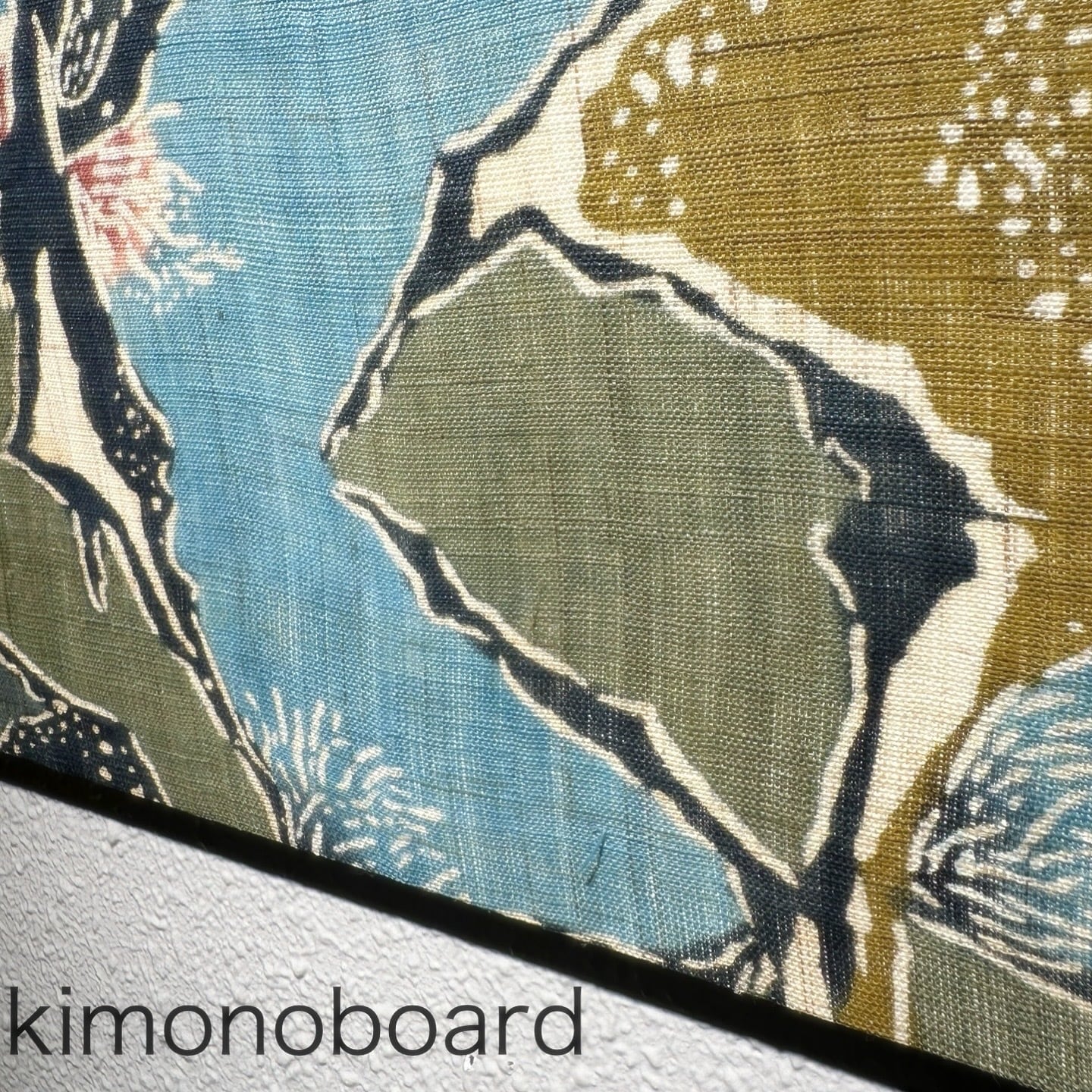 海底の情景を描いた紅型染めの麻生地を使用したキモノボードです。